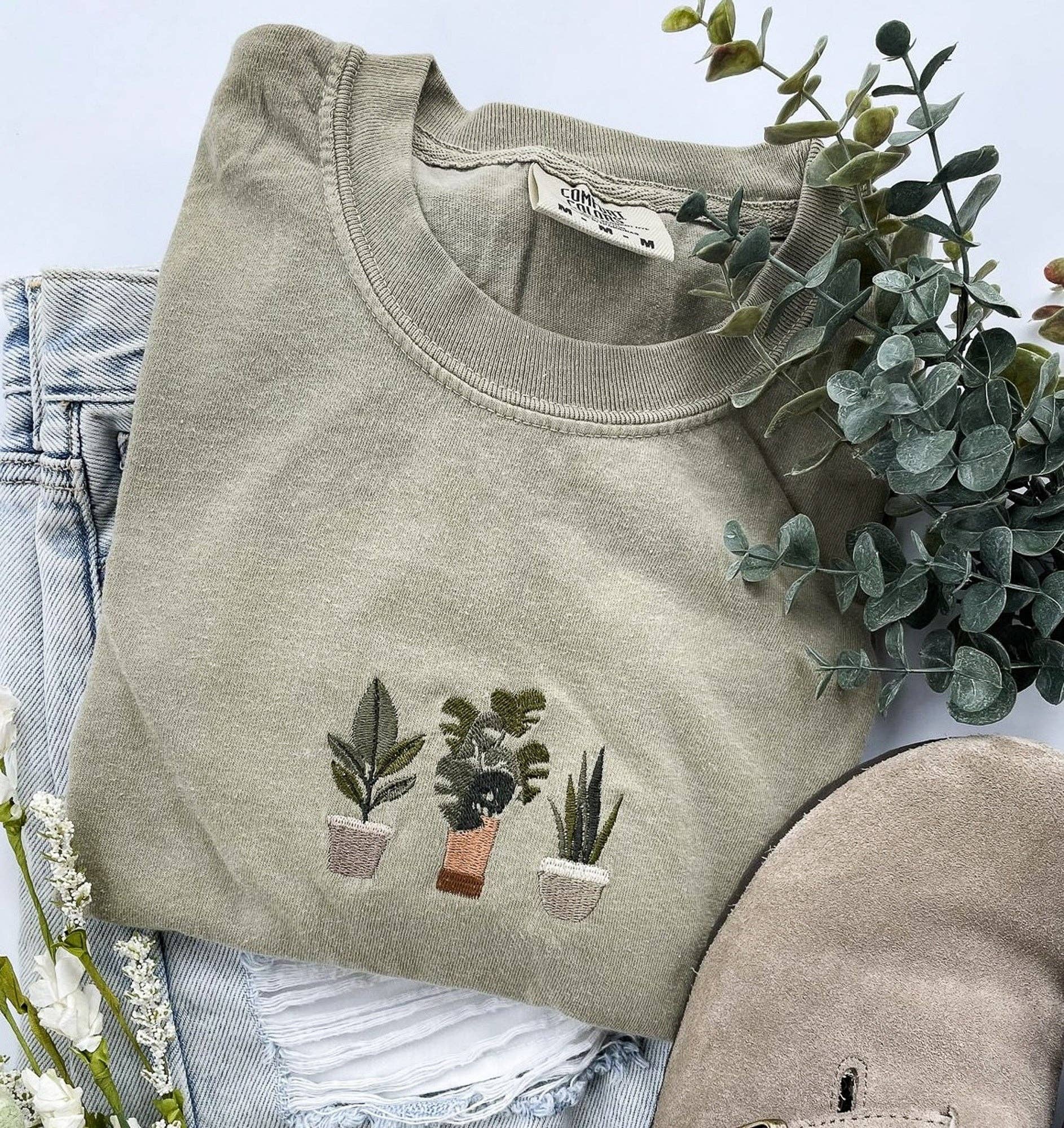 This fun "plant lady" inspired design is beautifully embroidered on our favorite, ultra-soft, comfy, cozy crew sweatshirts!