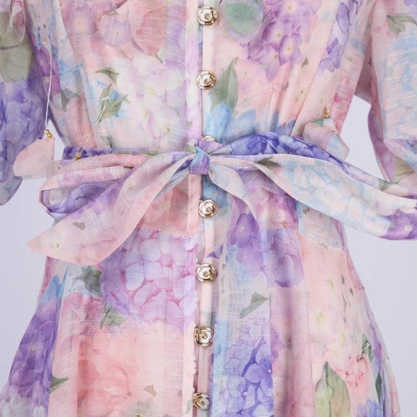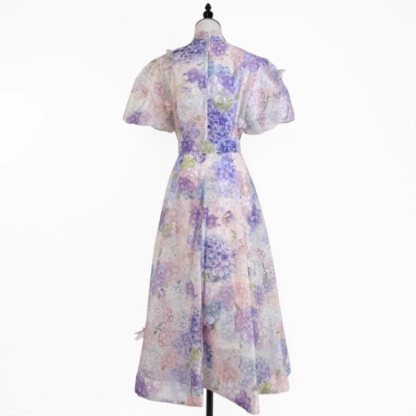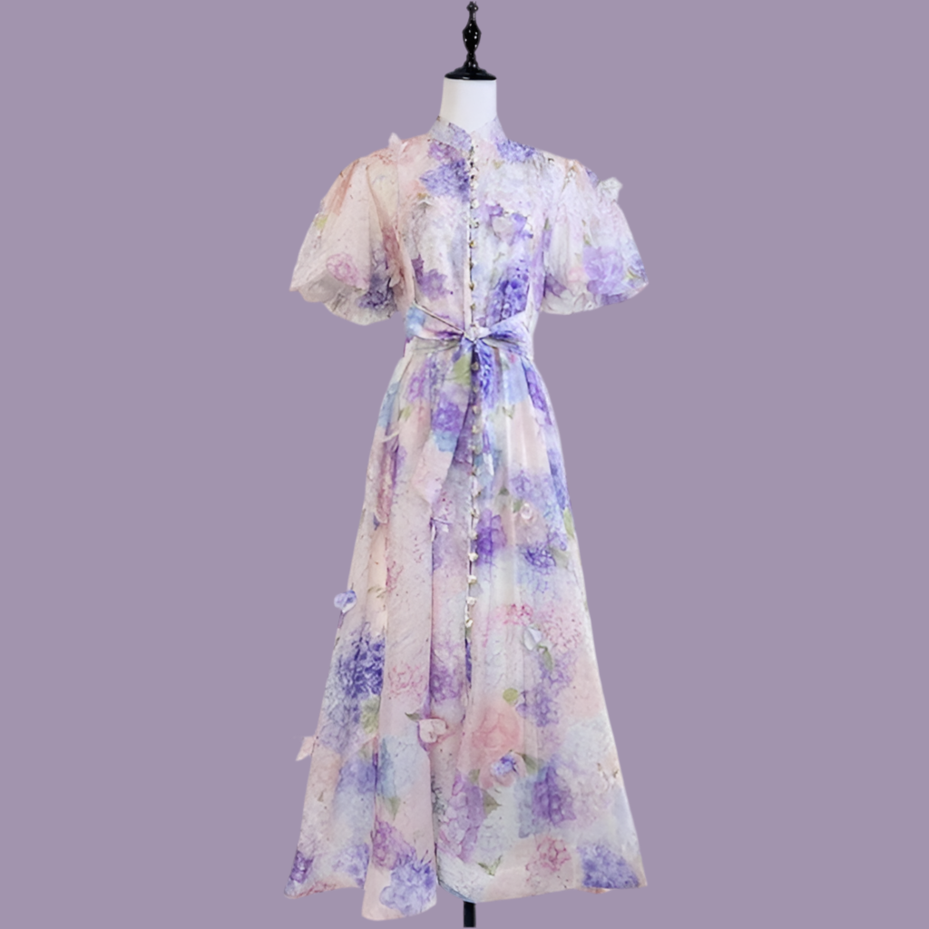 Romantic and refined, the Grace Embellished Maxi Dress showcases a sweeping floral silhouette crafted from lightweight viscose. Designed with airy bell sleeves and delicate floral embellishments, this maxi flows effortlessly with every step. A back zipper ensures a seamless fit, while dainty button detailing adds vintage charm.