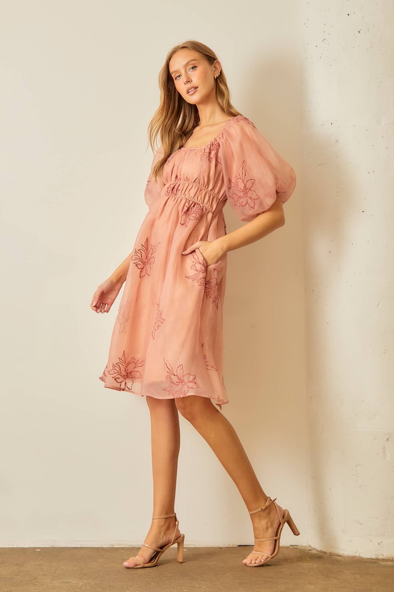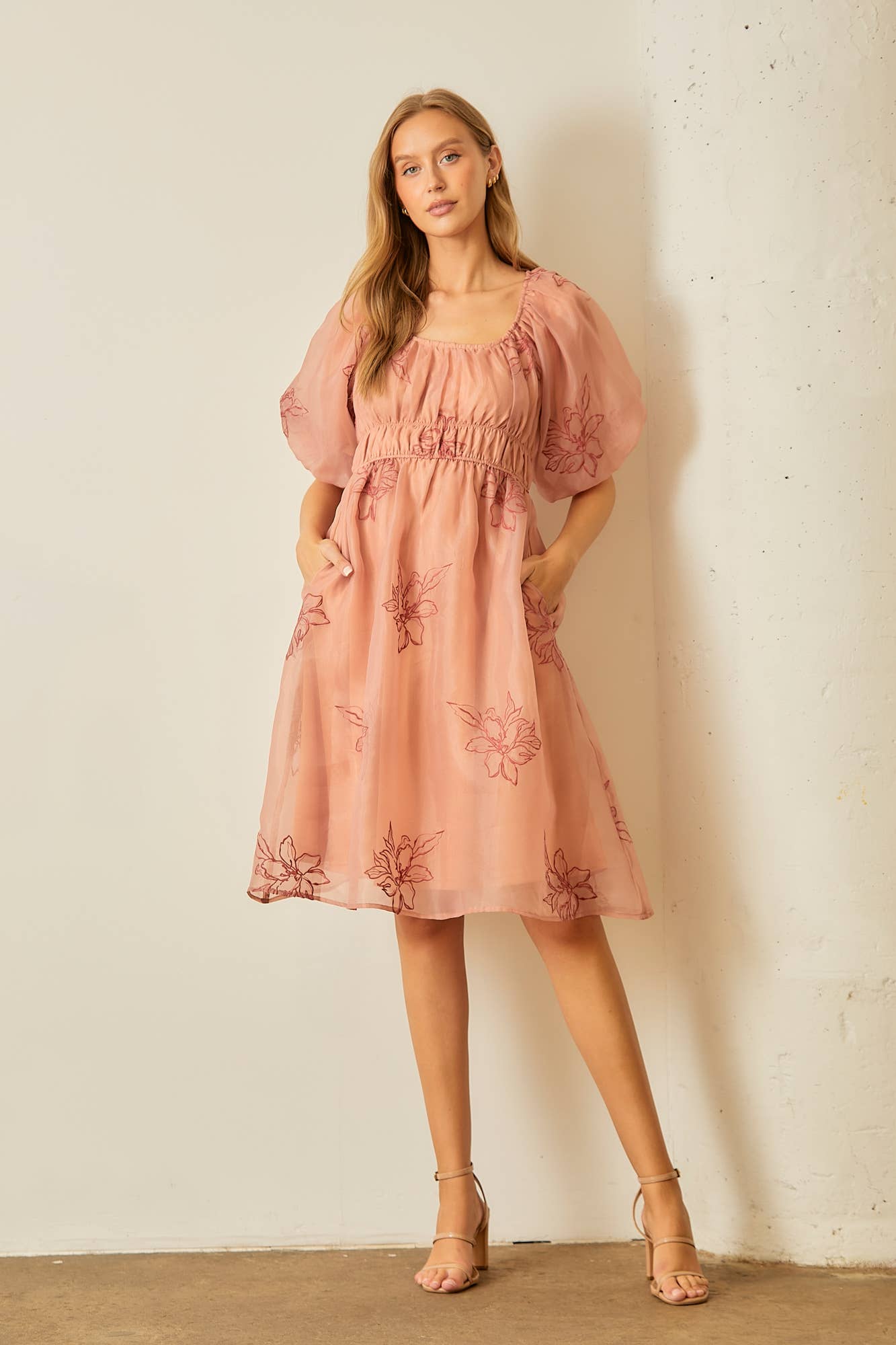 Ethereal Elegance Embroidered Organza Dress – A dreamy, feminine piece designed to make you feel effortlessly chic. Featuring delicate embroidered organza, romantic puff sleeves, and a flattering square neckline, this dress exudes timeless charm. With a flowy silhouette and convenient side pockets, it perfectly balances style and practicality. Ideal for special occasions, brunch dates, or whenever you want to add a touch of elegance to your look.