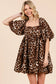 A little wild, a lot of cute. Our Leopard Bubble Skirt Babydoll Dress brings flirty and fierce together in one eye-catching silhouette. Designed with a puff-sleeve babydoll fit, it features a playful bubble skirt and a bold leopard print that’s made to stand out. The square neckline and smocked back give it a flattering fit, while the low back detail adds just the right amount of drama. Fully lined with convenient side pockets—because yes, we believe in fashion that works.