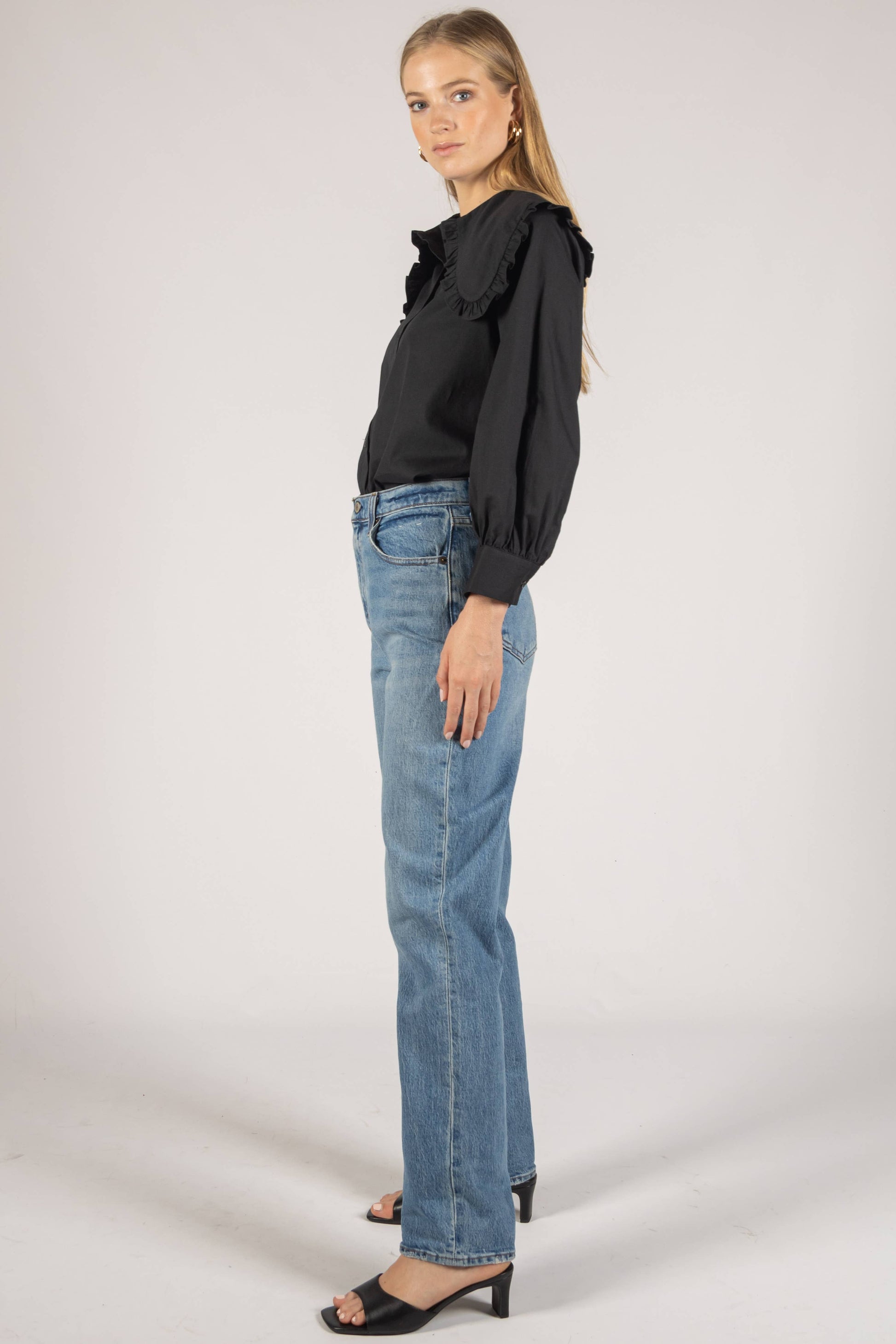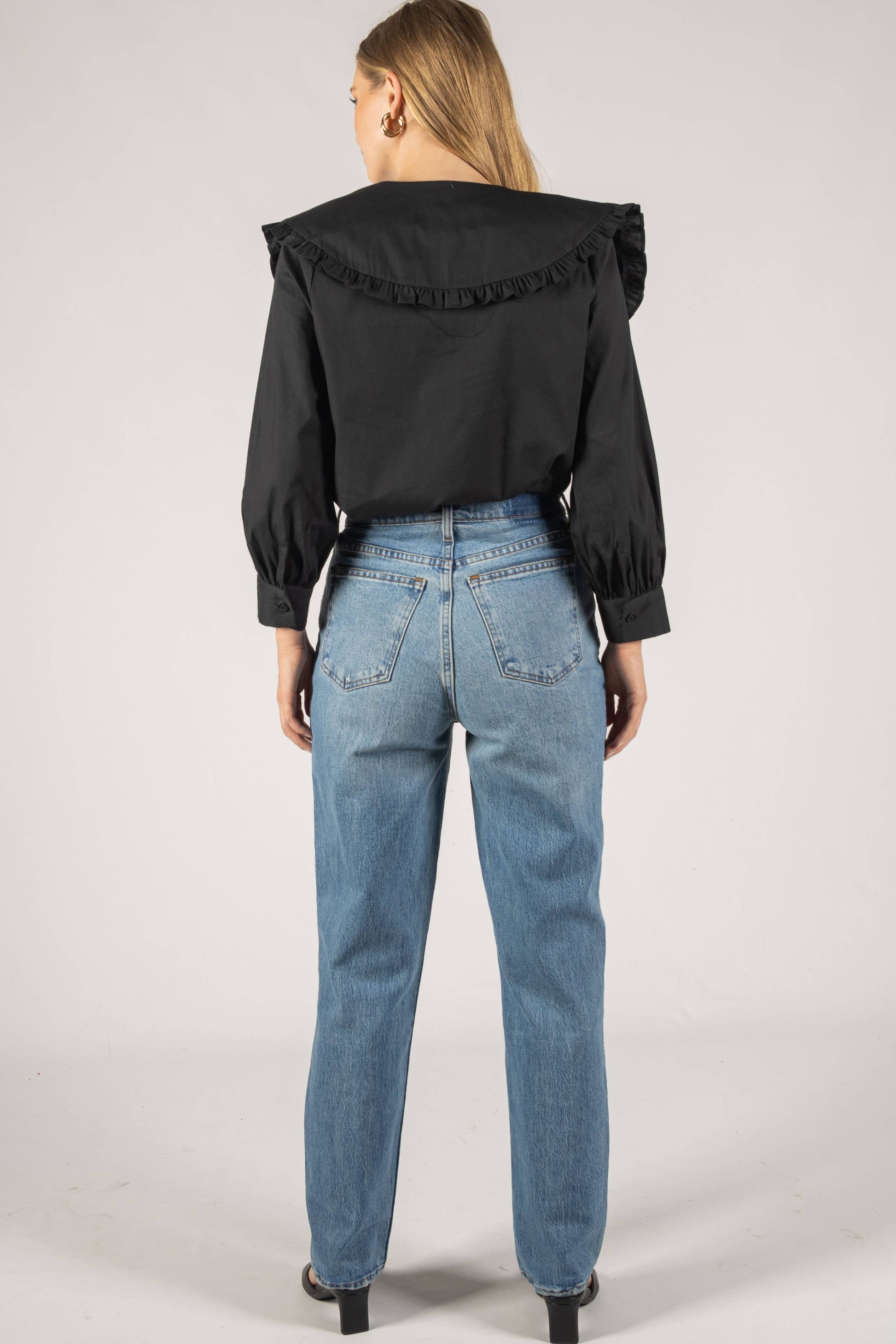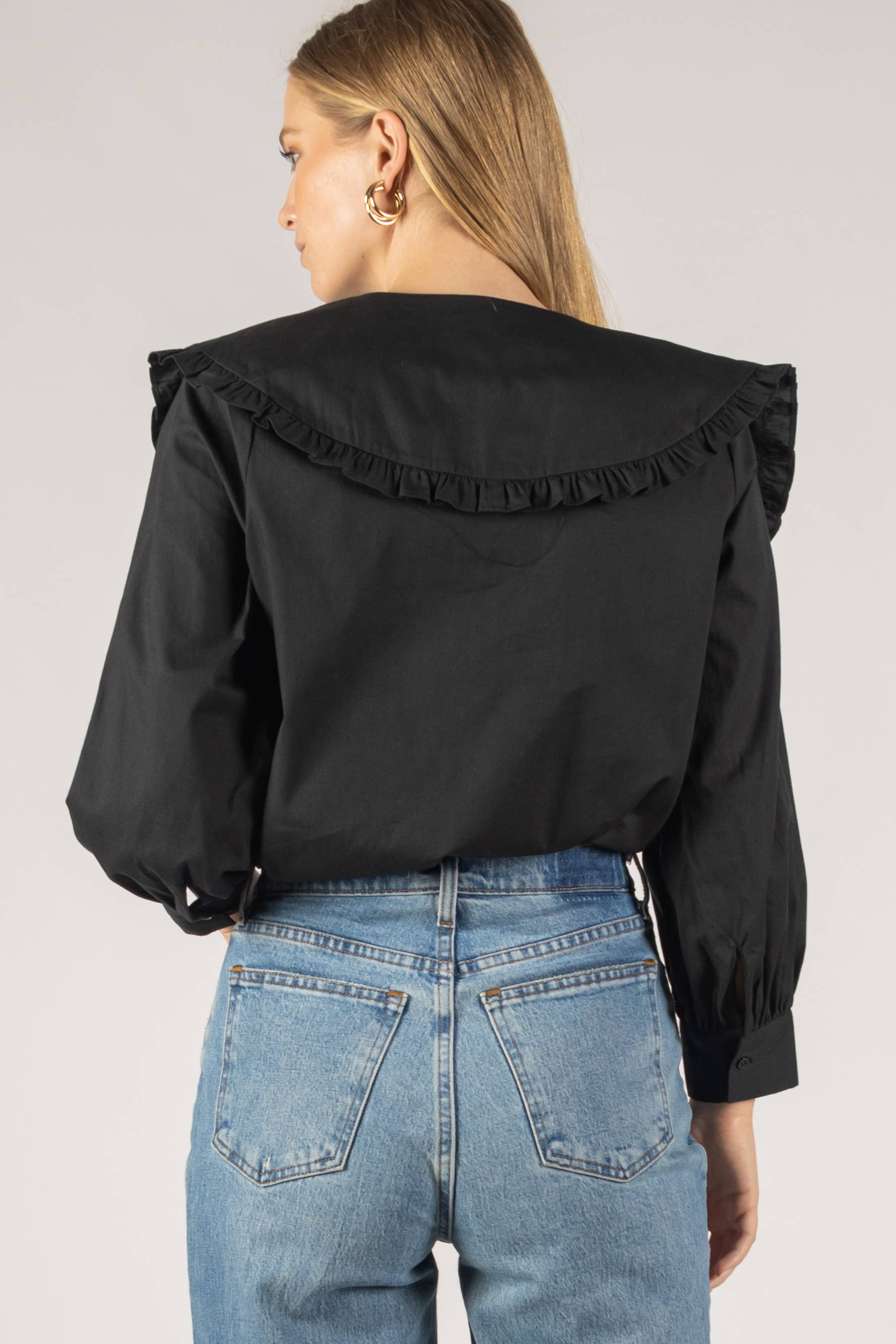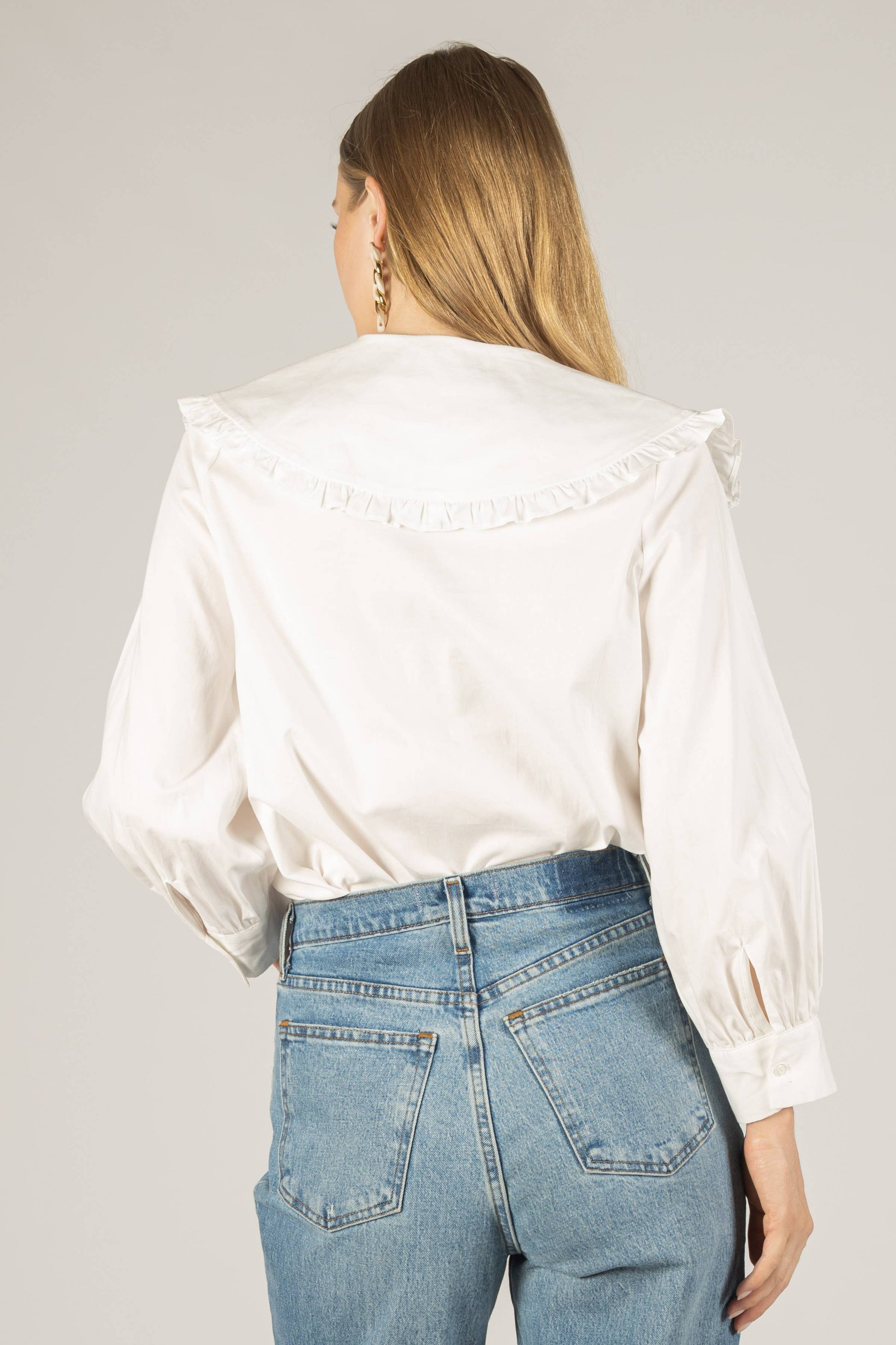- Cotton poplin fabric - Oversized ruffed peter pan collar - Button up shirt - Fitted style
